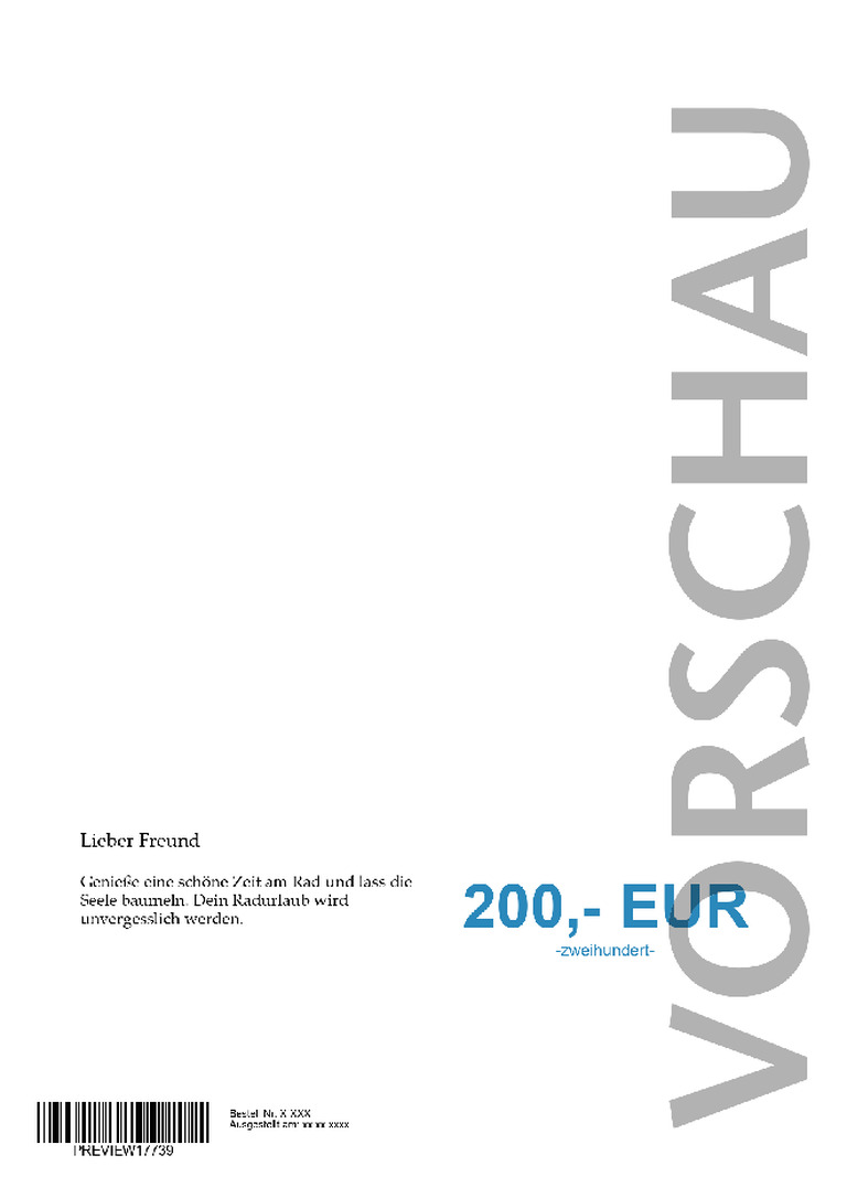 Beschenken Sie Ihre Liebsten mit einem Wertgutschein für Ihren nächsten Radurlaub im individuellem Design.